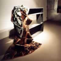“Cupboard II”, 1991 Amsterdam. Size: 200 x 50 x 25 cm. Material: 4 wooden crates covered with hammered lead. Veil: 150 x 160 cm. Material: acrylic on hydrophilic gauze. Price : 7000 € |