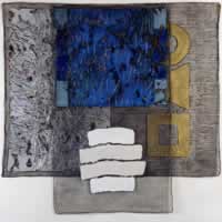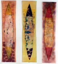 “Les Ephémères”, 1997 Paris, F. Material: acrylic/rice paper on hydrophilic gauze “Gli Scudi Rituali”, 100 x 140 cm. |